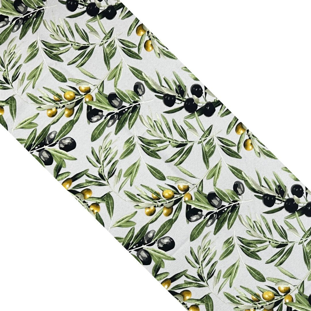 Beautify your table with our custom-made table runners, this Olive tree design is on a stone background.