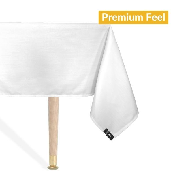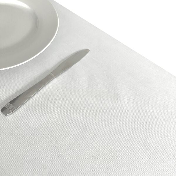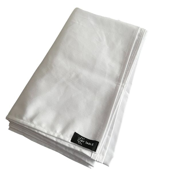 My Table SAA plain white cotton feel fabric, perfect to use as a base and get creative with different coloured runners and napkins, or can be draped on its own for a Pure fresh feel!