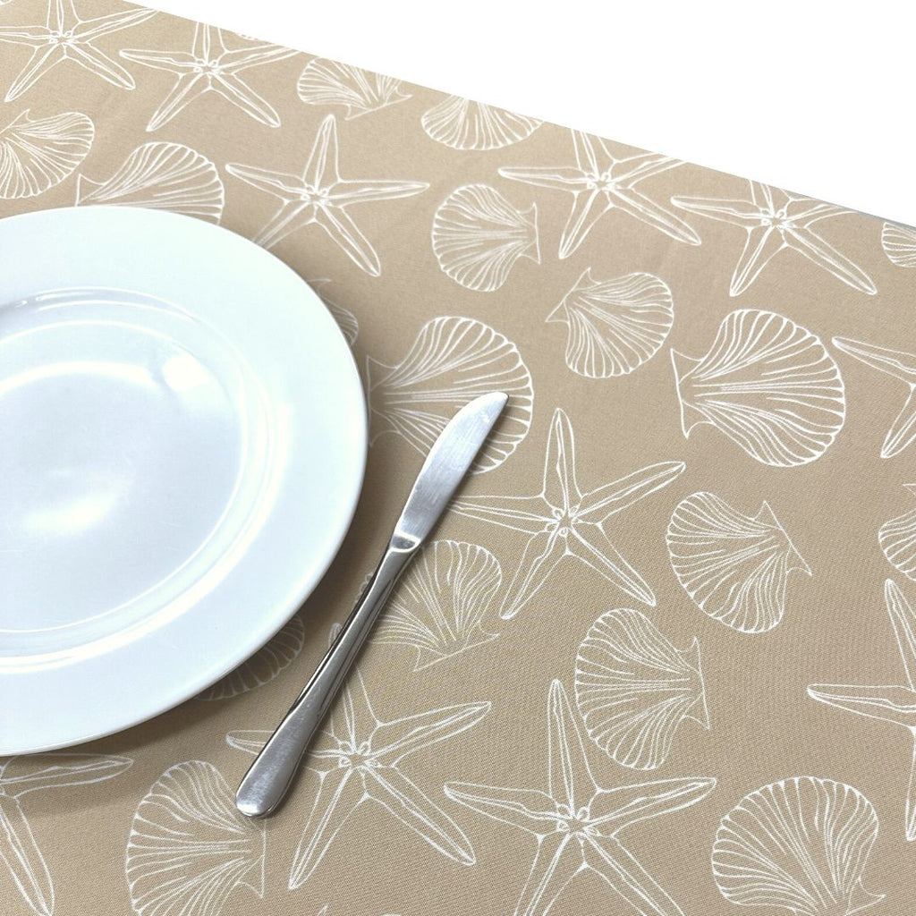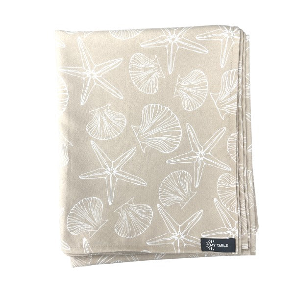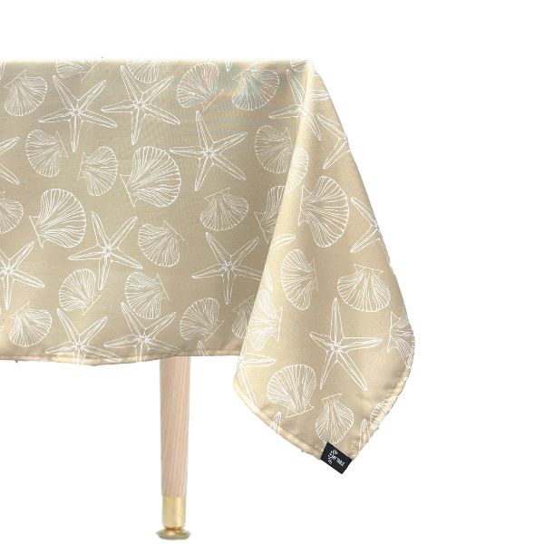 My Table SATransform your dining area/patio into a coastal oasis with this charming and whimsical tablecloth. Designed to bring the blissful vibes of summer to your home, the Summer Beach Tablecloth features a delightful white shell design on a soothing warm sand-colored background.