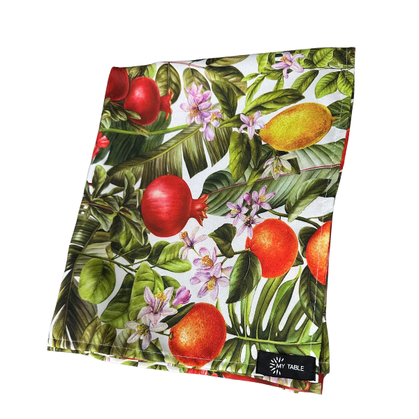 My Table SA"Bursting with vibrant lemons, rich pomegranates, and lush greenery, Mediterranean Bloom brings a touch of sun-drenched elegance to any table."