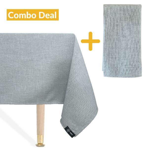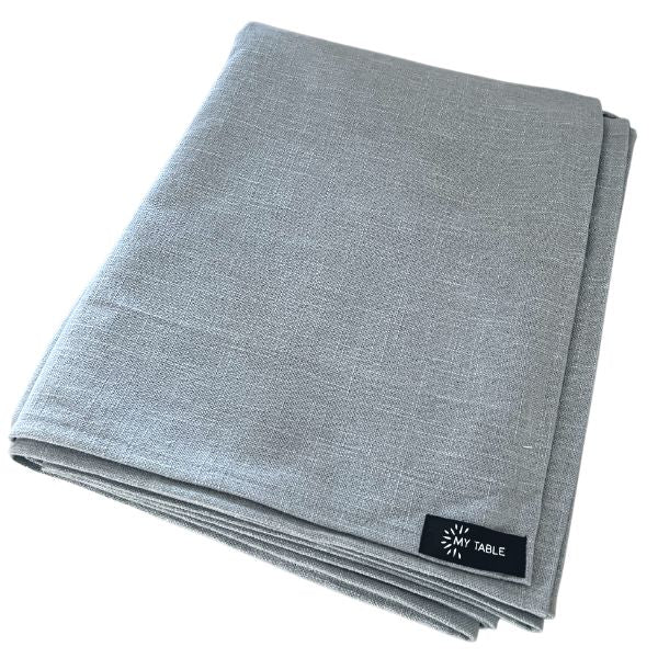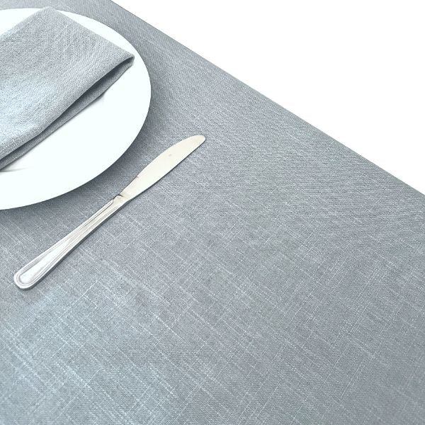 A light blue grey, stylish but subtle tablecloth, can be dressed up! This Linen Look fabric is stylish but sneakily very hardy & can take a bashing, perfect for dining.